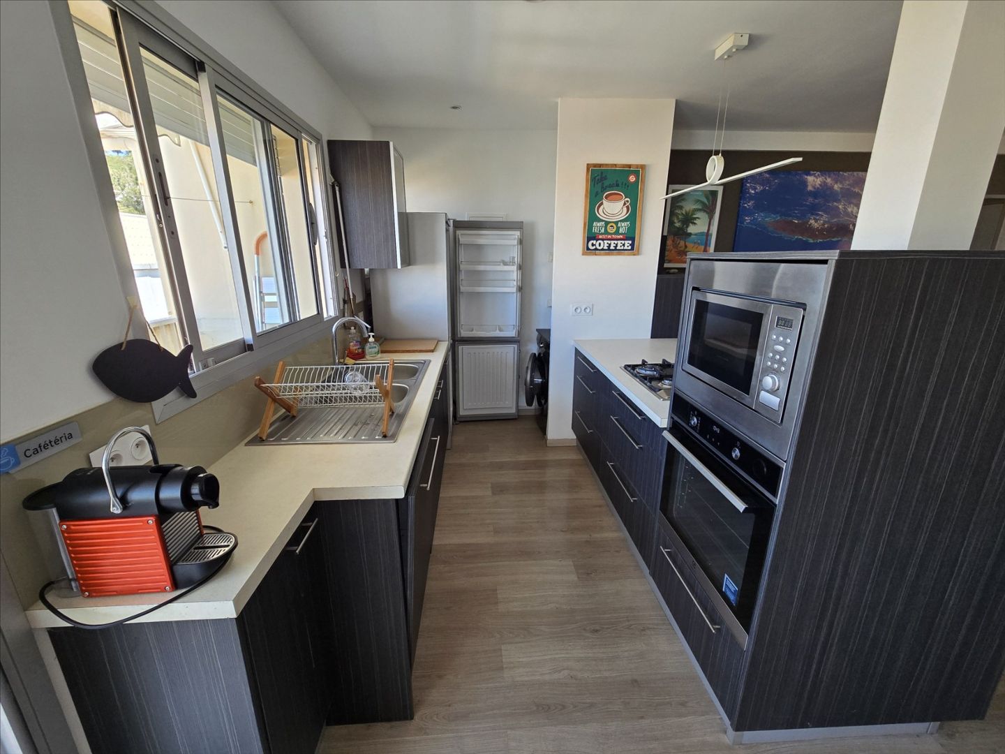 1er et dernier étage sans ascenseur, F3 de 72m², meublé et équipé, électroménager, vaisselles, linge de maison etc... séjour/cuisine, 2 chambres avec placard, salle d'eau, wc séparé, terrasse, climatisation, très calme, 1 cellier, 2 parkings sécurisés. Eau et forfait électricité 10 000F compris. 21, boulevard Extérieur, à 2 pas du tribunal et à 10 mns des plages. Bail de 6 mois minimum. Libre!- Appartement F3