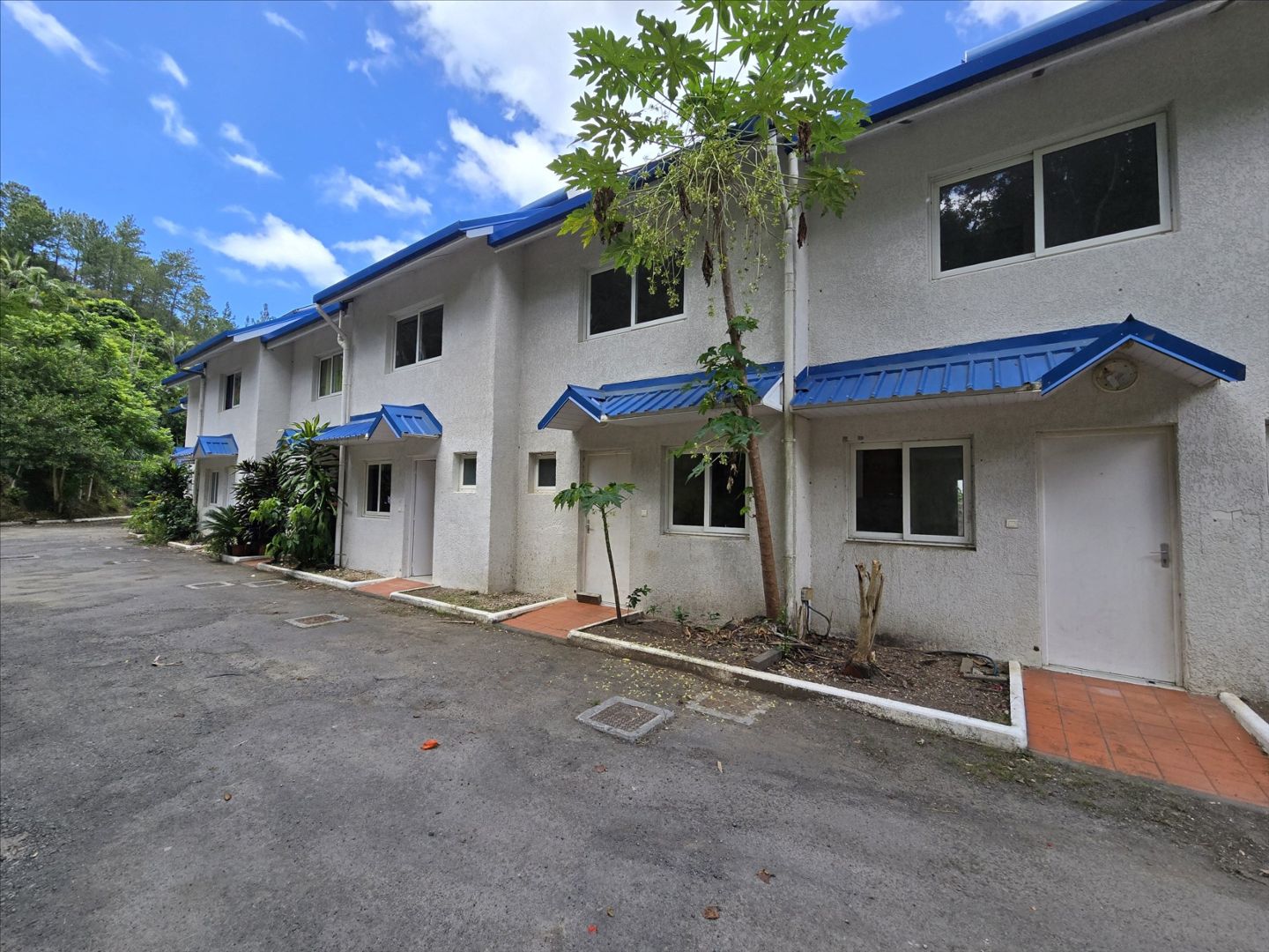 Villa mitoyenne F4 de 86m² en triplex avec jardinet et terrasse couverte, séjour, coin cuisine, chambres et salle d'eau au 1er étage, mansarde de 12m² au dernier étage, 2 wc. Quartier calme, derrière le collège de Boulari, parkings. Libre- Maison F4