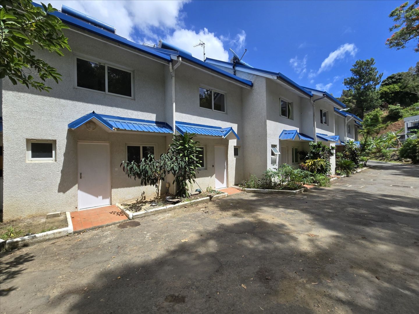 Villa mitoyenne F4 de 86m² en triplex avec jardinet et terrasse couverte, séjour, coin cuisine, chambres et salle d'eau au 1er étage, mansarde de 12m² au dernier étage, 2 wc. Quartier calme, derrière le collège de Boulari, parkings. Libre- Maison F4