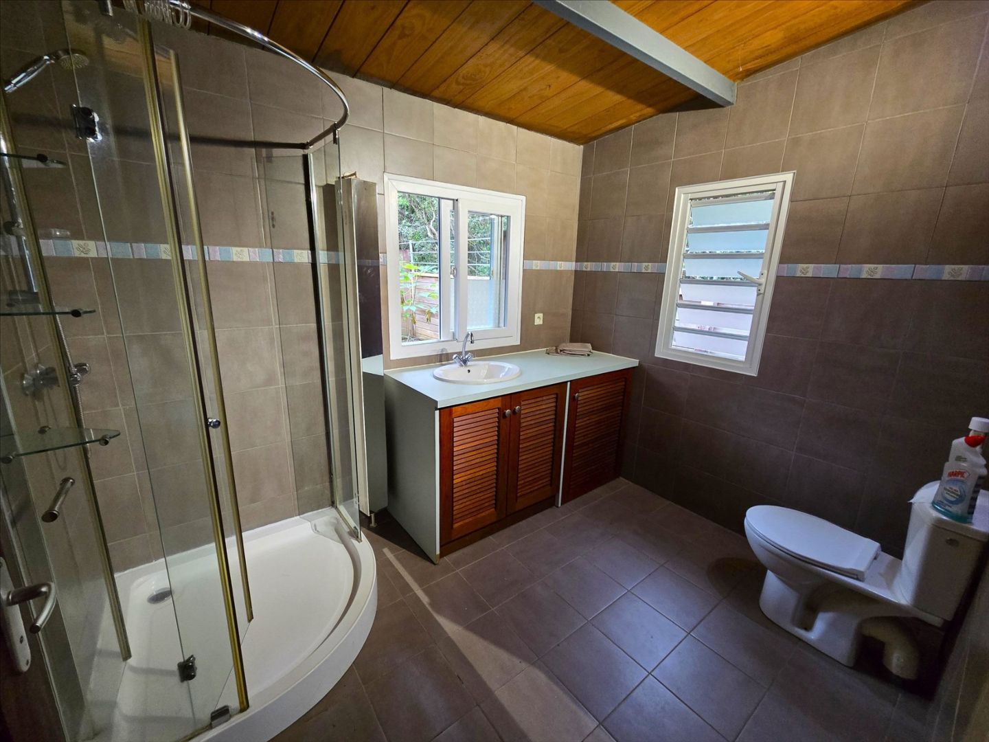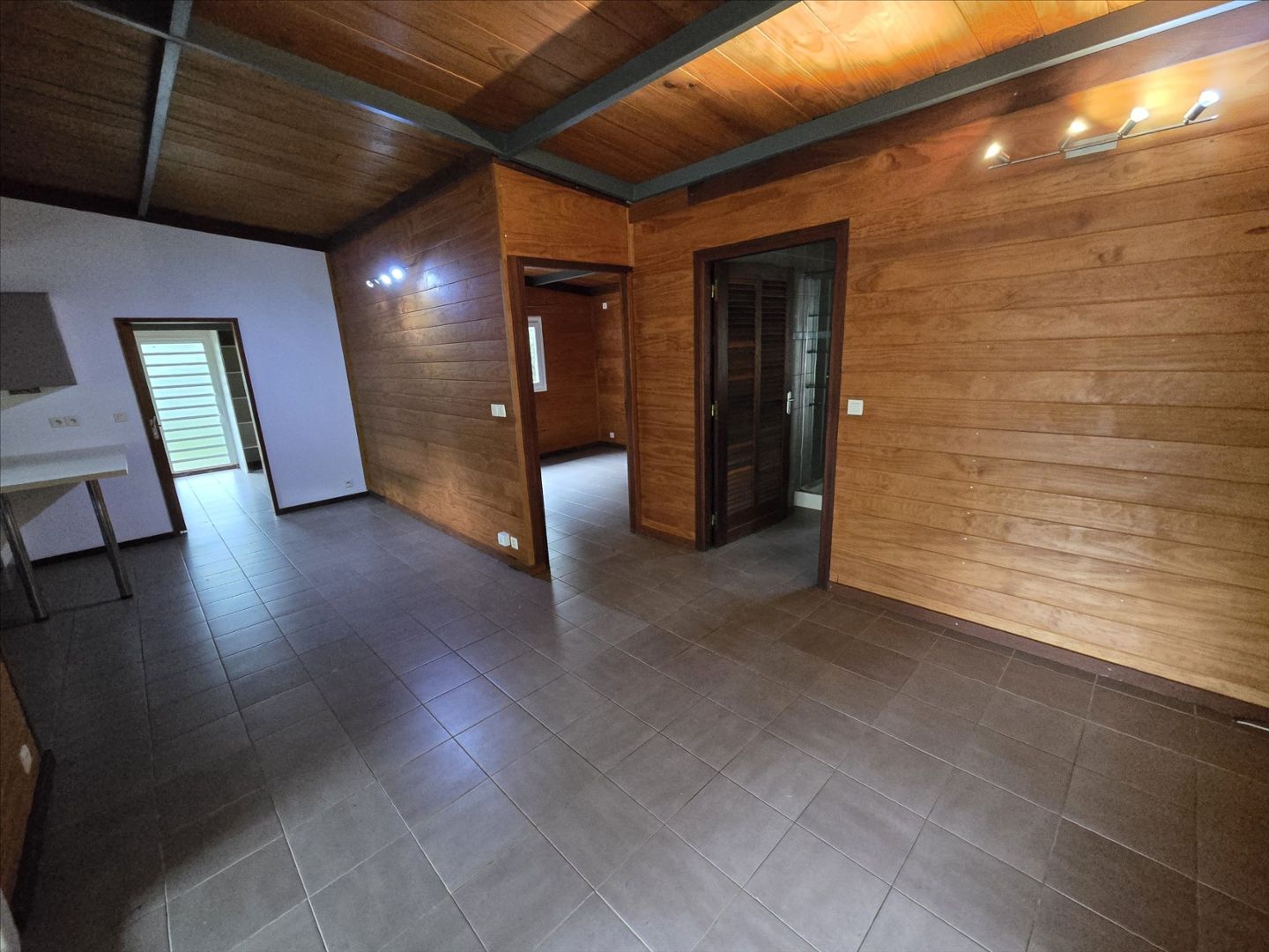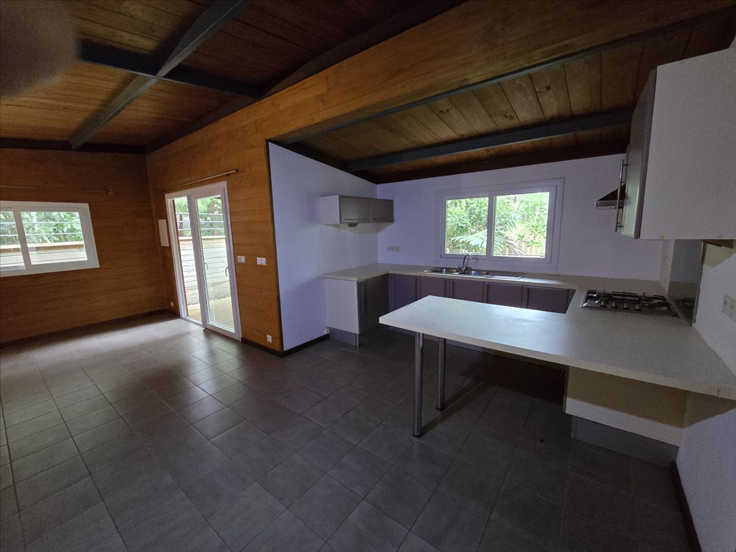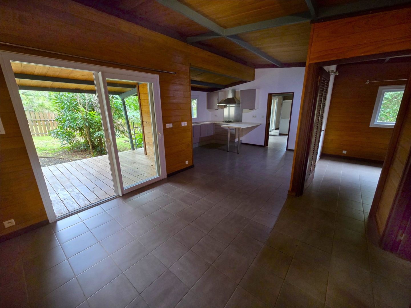 Coquet chalet F3 de 58m² dans propriété, séjour, cuisine équiipé, 2 chambres avec placard, salle d'eau/wc, terrasse, parking, jardin clos. Charges de 15 000F comprenant eau/électricité/poubelles. Le calme absolu. à 2 mns d'une petite plage. Libre!- Maison F3